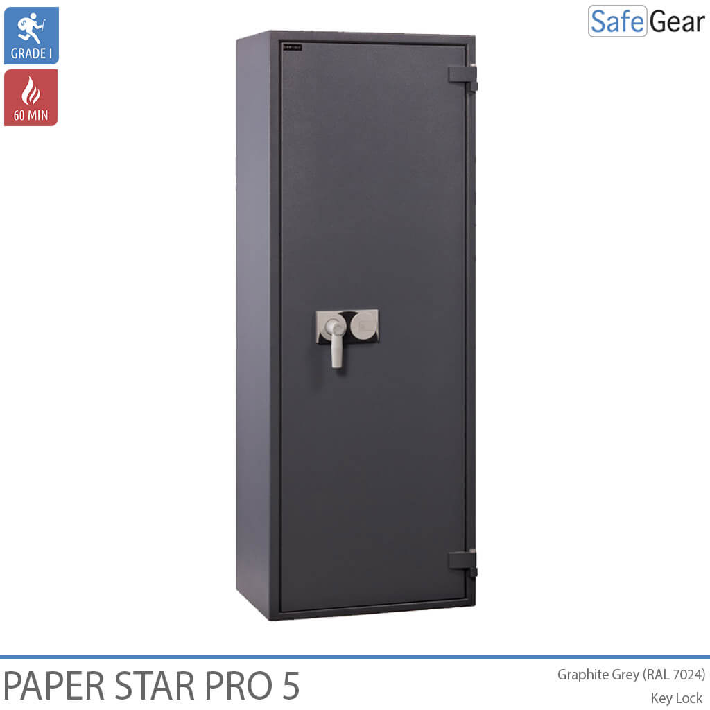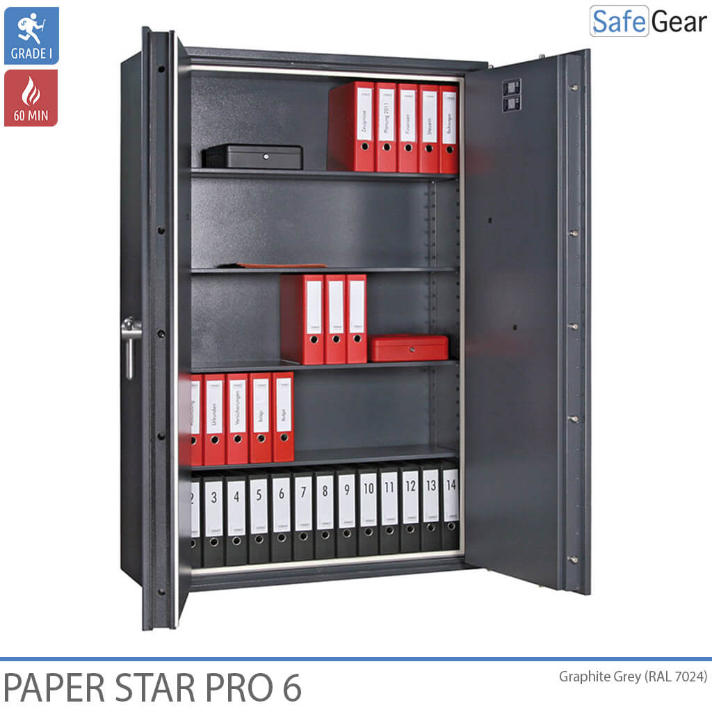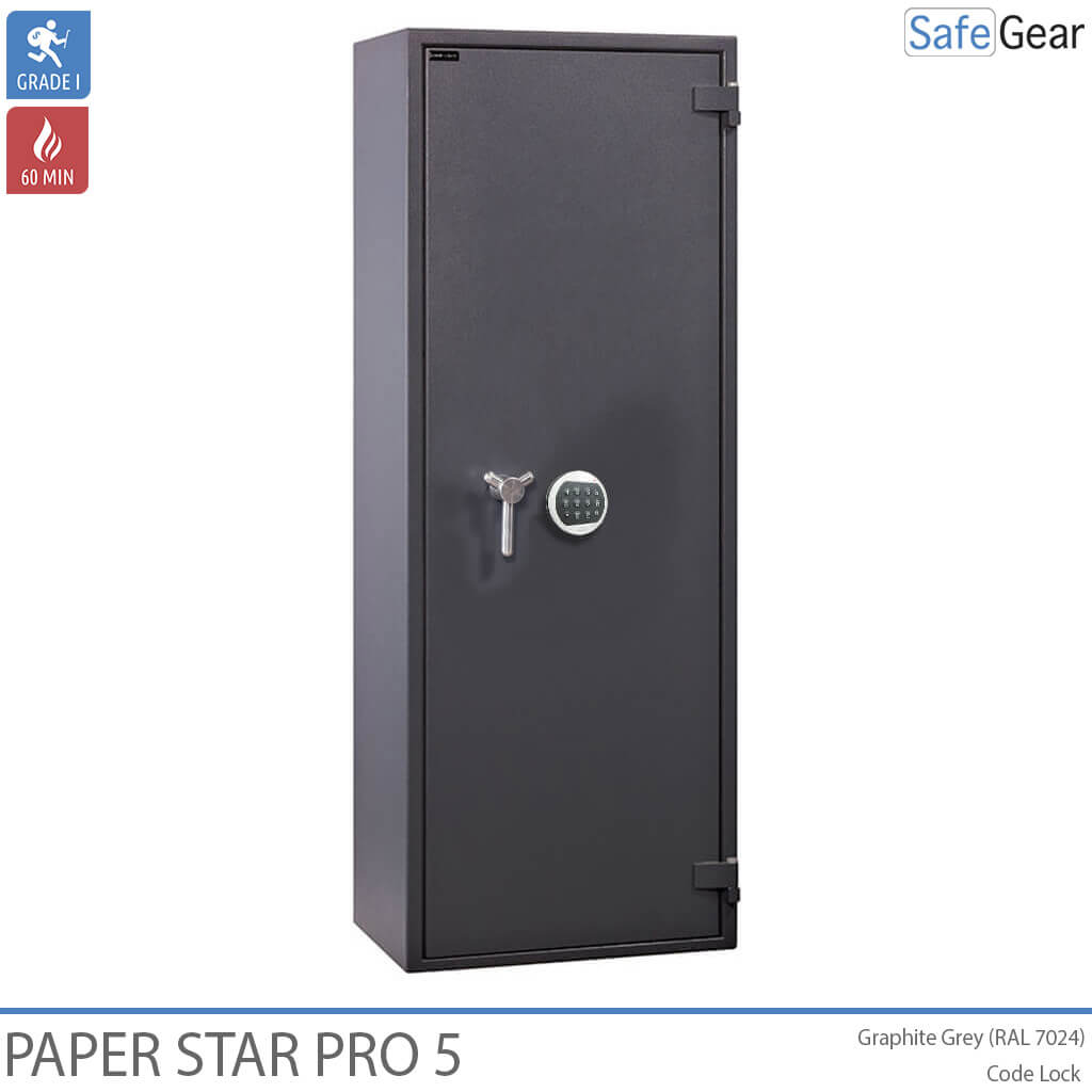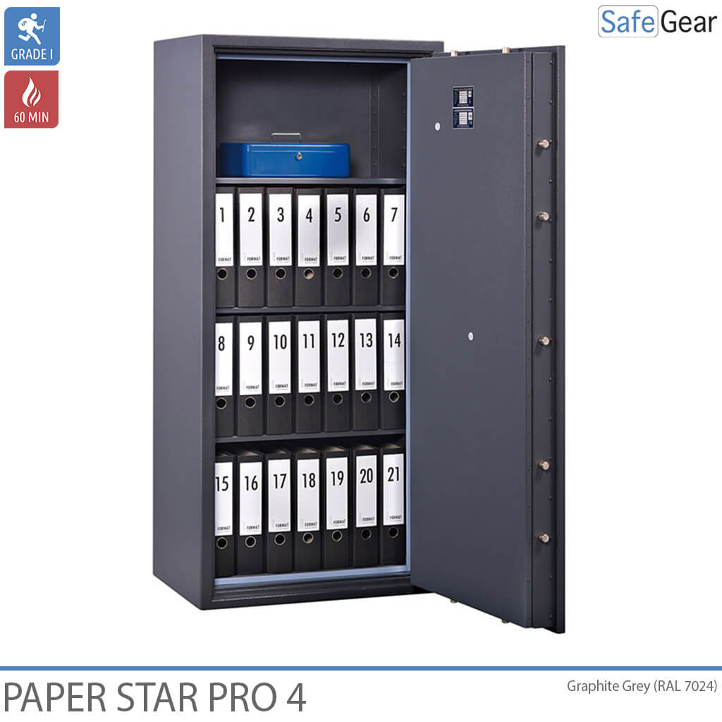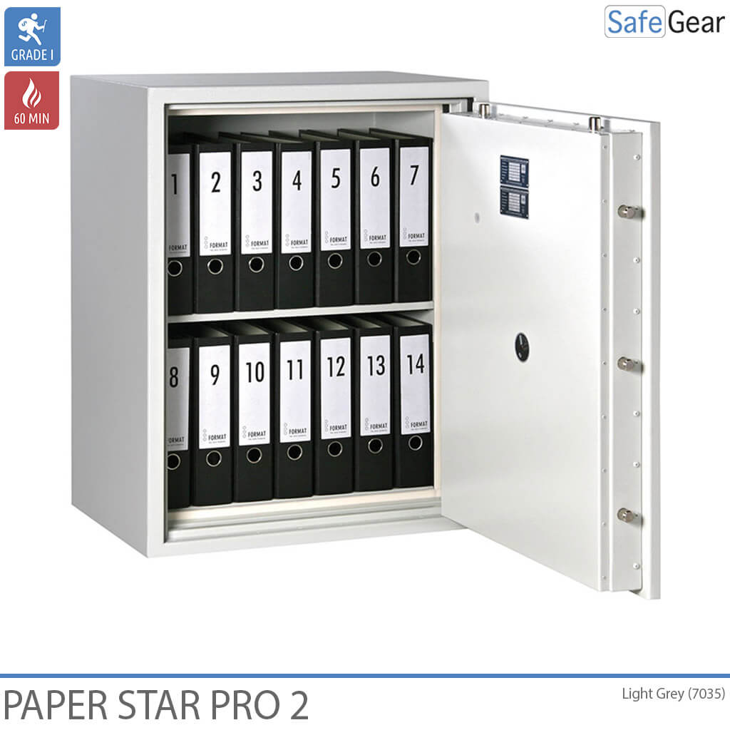 De Paper Star Pro is een documentenkluis, goedgekeurd door de verzekering vanwege zijn certificering in Grade 1 en brandwerend voor 60 minuten.