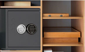 Voor maximale veiligheid verbergen of verbergen sommige eigenaars hun kluizen in kasten, garderobekasten of zelfs keukenkasten, zolders of badkamers. Wij hebben ook wand- en vloerkluizen die achter een schilderij of een tapijt kunnen worden verborgen.