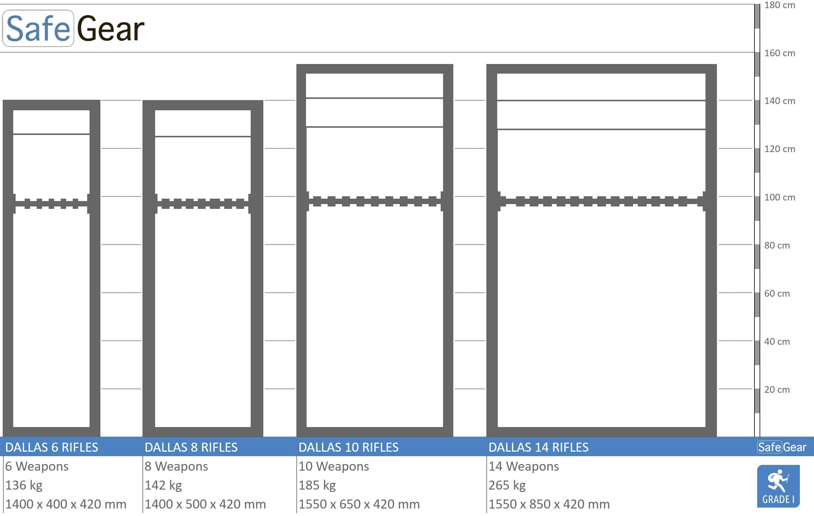 Dallas Wapenkluizen uitgerust met planken voor de opslag van minutie, documenten of waardevolle objecten.